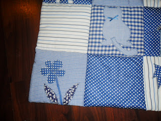 Състои се от 16 квадрата с размери 20/20 см.Десет от тях са апликирани,останалите шест реших да оставя изчистени за да не стане претрупано:
