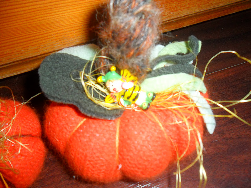 Е, те това не мога да разбера - един пуловер само, а толкова тикви излязоха от него. Грее стаята от тях! Ами докато чакаш за други материали, верно - бодни една китка в косите и изметкай един тиквеник, обачи шибни доооооста захар. Таня